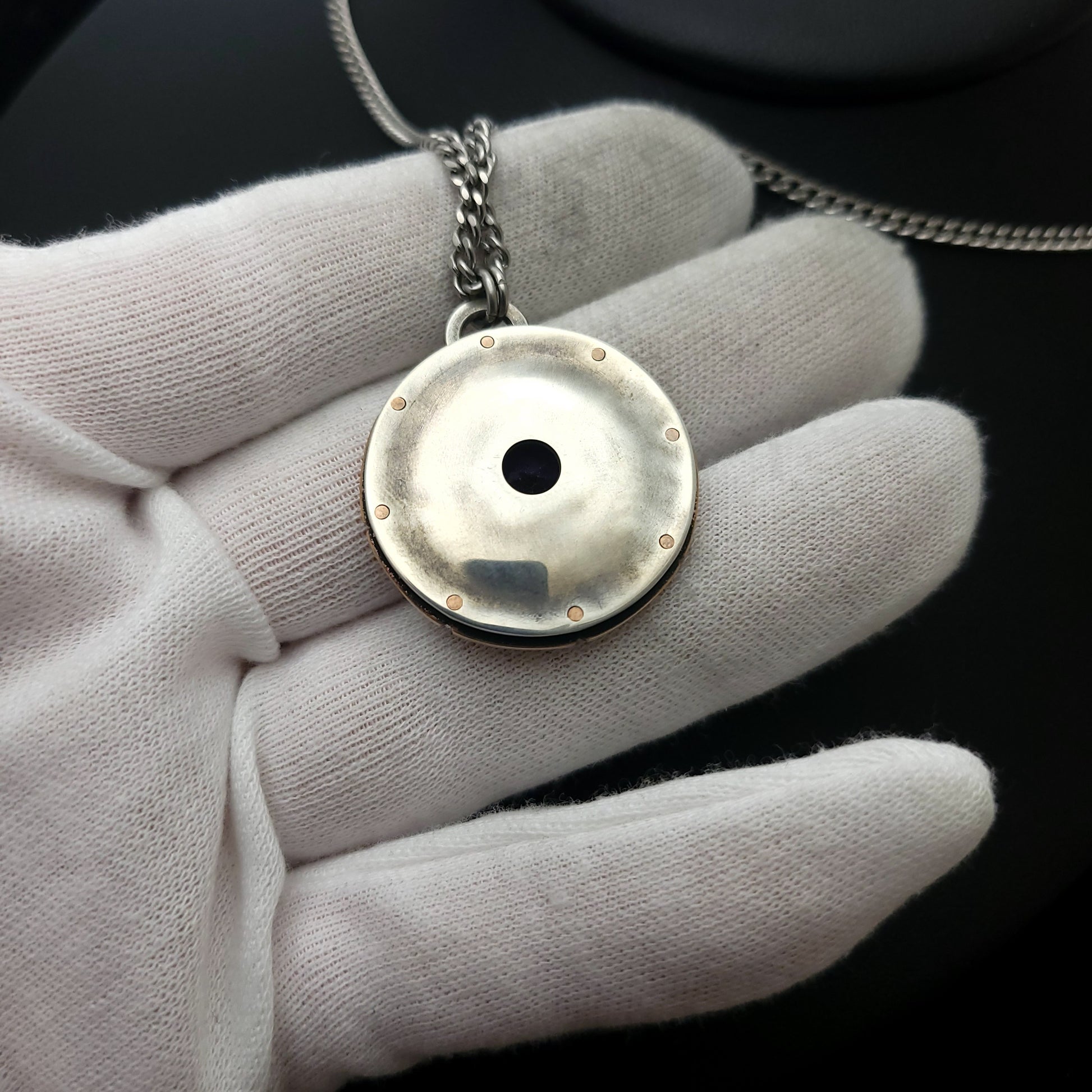 This one of kind medallion was hand fabricated here at my in home studio in Wisconsin