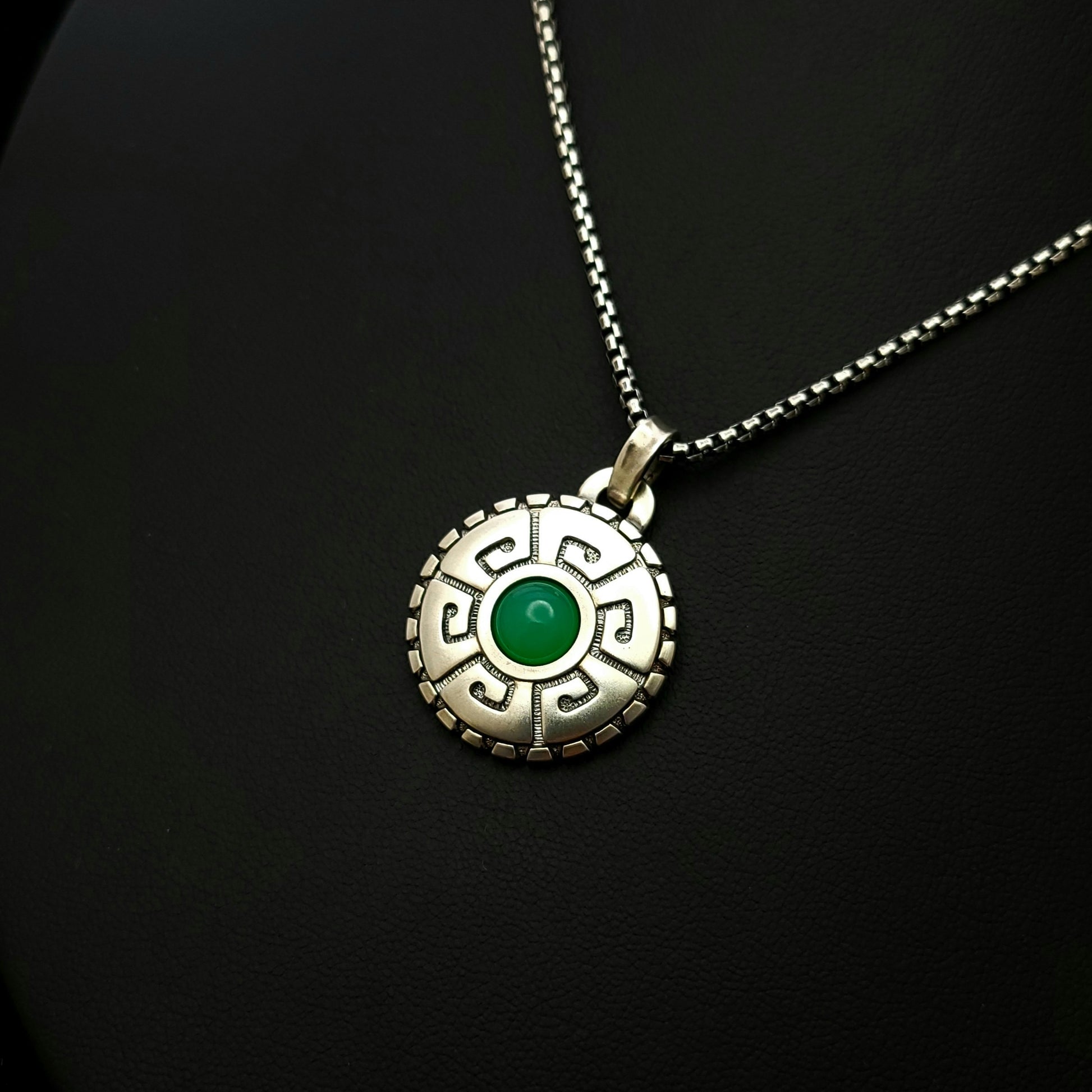This pendant is made from two shallow hemispheres and has a lentil bean or "flying saucer" type shape.