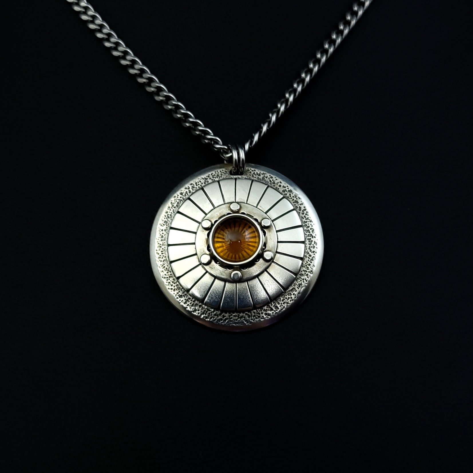 This one of a kind medallion was hand fabricated from Argentium Sterling Silver here at my in home studio in Wisconsin.