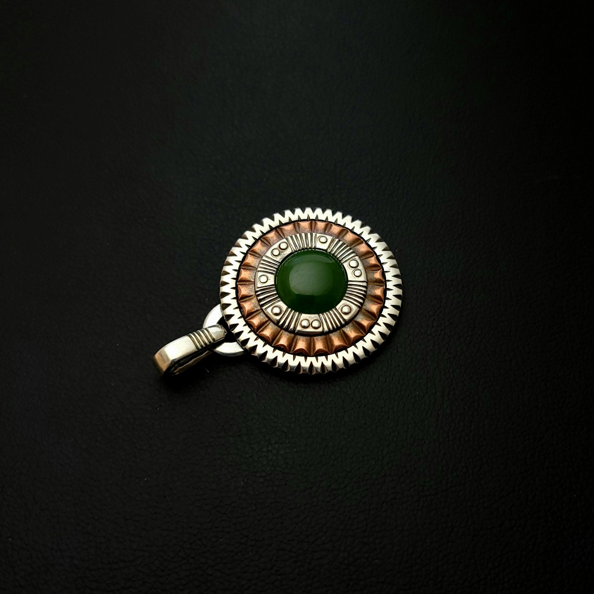 Features a single Nephrite Jade cabochon personally cut here in my studio.